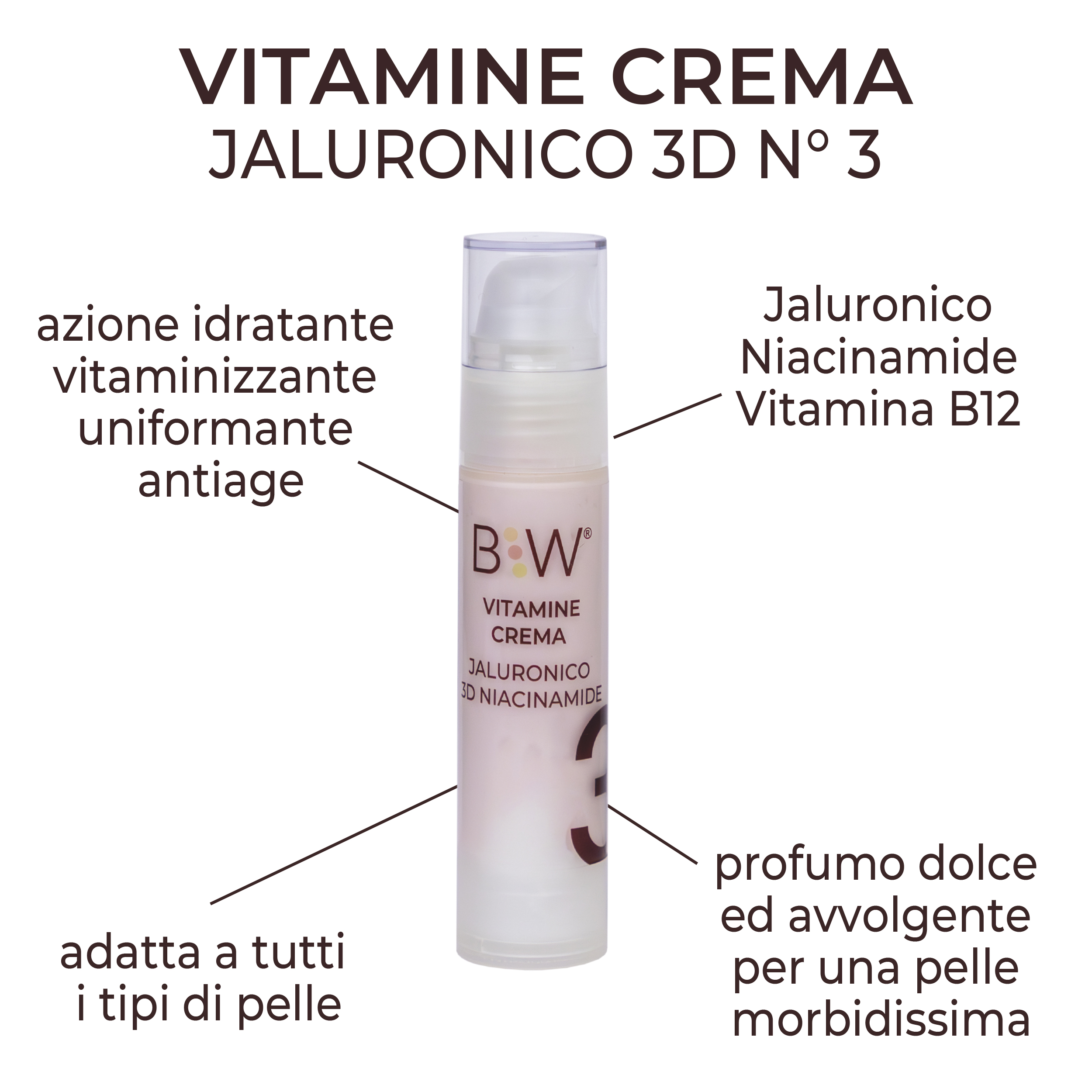 Crema Viso preziosa con vitamine, jaluronico 3D, cellule meristematiche e niacinamide ad azione antiossidante, antiage uniformante. Adatta a pelli disidratate, denutrite, disomogenee e reattive.